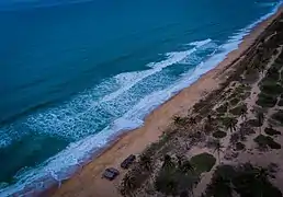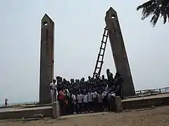 Gberefu Island also known as Point of No Return is a populated historical island located in Badagry, a town and local government area of Lagos State, South-Western Nigeria.[1] Symbolized by two poles slightly slanted towards each other and facing the Atlantic Ocean, the island was a major slave port after it was opened in 1473 during the Trans-Atlantic Slave Trade era.[2] According to Nigerian historians, as many as 10,000 slaves were believed to have been shipped to the Caribbean and Americas between 1518 and 1880 from the island.[3]
