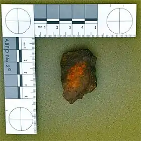 In February 2009 and 2010, meteorite fragments with masses ranging from < 1 gram (0.035 oz) to 35 kilograms (77 lb), plus an 83 kilograms (183 lb) specimen, were found in and around a 45 metres (148 ft) radius from Kamil Crater by an Italian-Egyptian geophysical team.[2] About 800 kilograms (1,800 lb) was recovered.[2] The geophysical survey took place as part of the "2009 Italian-Egyptian Year of Science and Technology".[2]