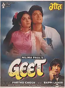 Geet (transl.Song) is a 1992 Indian Hindi film directed by Partho Ghosh. The film stars Avinash Wadhawan, Divya Bharti in lead roles. Shakti Kapoor, Laxmikant Berde play supporting roles.[1]