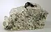 Emerald, clinozoisite, sphene, and epidote | The image shows a light olive green coloured sphene (titanite) with epidote on calcite matrix. | [3] |