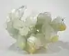 Quartz | Various types of quartz found are diamond, window, quartz on prehnite, and faden. Image shows translucent light sea-foam green prehnite with quartz crystals. | [3] |