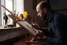 Gentian's art is focused on portraits, landscapes and drawings. He is inspired by the Pre-Raphaelite brotherhood and most of his female portraits have an idyllic and dreamy expression, set on abstract backgrounds which often dictate mystery. His landscapes have been influenced mostly by his uncle's work but also the great master, Camille Corot, has had a huge impact on him since he was 13 years old. The artist is into mythology and symbolism as well, on some of his illustrations, drawings and compositions.