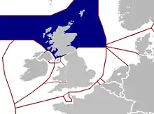 30A map of British Isles EEZs and surrounding nations. Internal UK borders are represented by thin lines.Scotland's EEZ is highlighted in blue.
