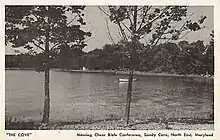 Palmer founded the "Sandy Cove" Christian conference center and camp on the shores of the Chesapeake Bay in North East, Maryland, in 1946.[31][32] His Morning Cheer non-profit organization was formed to own and operate the 450-acre (180 ha) property, along with corporate offices and a bookstore on Walnut Street in Philadelphia.[12][33][34][35] The Conference Center's nondenominational program of guest speakers and musicians continues to operate year-round. Notable speakers in past years have included Cal Thomas, Tony Campolo, Ravi Zacharias, Donald Barnhouse, William Culbertson III, J. Vernon McGee, and John F. MacArthur.[2][36] Celebrated baritone soloist George Beverly Shea sang at Sandy Cove in July, 1948, and Maryland Governor Theodore R. McKeldin preached at Sandy Cove on September 1, 1953.[37][38] A 152-room hotel, the "Chesapeake Lodge & Conference Center", was built on the property and opened in May 1987. As many as 3,000 people have attended the weekly Saturday night concerts.[39]