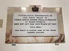 George Sholto Gordon Douglas-Pennant, 2nd Baron Penrhyn (30 September 1836 – 10 March 1907), was a landowner who played a prominent part in the Welsh slate industry as the owner of the Penrhyn Quarry in North Wales.
