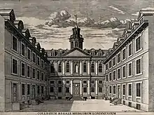 In 1733, on the recommendation of Hans Sloane, he was appointed beadle to the Royal College of Physicians in London.[2] The beadle was the administrator of the college and the person in charge of the college property. Edwards styled himself as the "librarian" of the college; one of his duties was to take care of the library.[8] Sir Hans Sloane, founder of the British Museum, had employed George Edwards as a natural history painter for some years, and had Edwards draw miniature figures of animals for him. Edwards visited Sloane once a week to share news and a coffee. Sloane kept track of Edwards's expenses and reimbursed him annually. Edwards served as College librarian for thirty-six years. He was elected Fellow of the Royal Society and of the London Society of Antiquaries.[9]