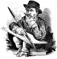 George Frederick Keller (1846–?) was a cartoonist active in California, known as the primary illustrator of the San Francisco satirical magazine The Wasp. Born in Prussia, he emigrated to the United States and fought in the U.S. Civil War, settling in California around 1870.[1][2] He apprenticed to lithographer George Baker, where his first job was lithographing colorful cigar box labels.[3][4] He joined The Wasp, also founded by Prussian immigrants, with its first issue, debuting in August 1876. Some of his work reflected the anti-Chinese and anti-immigrant sentiment of late 19th-Century San Francisco in highly racialized stereotypes, depicting Chinese as rat-like invaders, Irish as Neanderthals, and Jews as hook-nosed moneylenders.[2][5] Keller's final cartoon was published June 30, 1883, after which he left the San Francisco area "and was never heard from again".[6]