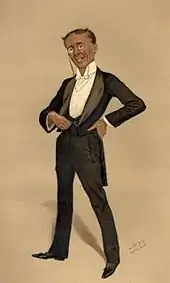 Grossmith was followed, in the Gilbert and Sullivan comic roles, by a number of other popular performers; those who played his roles at the Savoy Theatre for an extended period of time have included Henry Lytton, Martyn Green, Peter Pratt and John Reed, among others. Over forty of the songs that Grossmith wrote or performed in his one-man shows have been recorded by baritone Leon Berger (a British Gilbert & Sullivan singer and Grossmith scholar), accompanied by Selwyn Tillett (G&S scholar) on two CDs: A Society Clown: The Songs of George Grossmith and The Grossmith Legacy. The latter also contains the recorded voice of Grossmith's son, George Grossmith Jr. Both are on the Divine Art Label.[48] No recordings of Grossmith's voice are known to exist, although wax cylinder recording technology was available during his lifetime.[49] Cups and Saucers was recorded by Retrospect Opera in 2016, together with F. C. Burnand and Edward Solomon's Pickwick.[50]