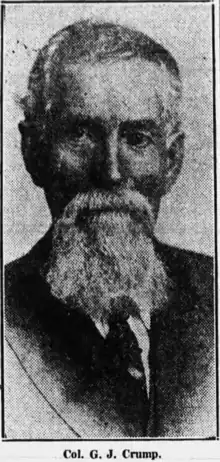 George James Crump (June 13, 1841– December 4, 1928) was an officer in Confederate Army during the American Civil War, a lawyer, a state legislator for one term in the Arkansas House of Representatives and a public official.[1]