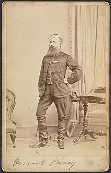 Carey subsequently transferred to 2nd Battalion, 18th (Royal Irish) Regiment of Foot. In 1863, he went to New Zealand and commanded the troops at the Capture of Orakau, a Māori stronghold.[3] In 1865 he signed a peace treaty with Wiremu Tamihana, the Māori leader.[4]