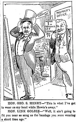 George Stewart Henry (July 16, 1871 – September 2, 1958) was a farmer, businessman and politician in Ontario, Canada. He served as the tenth premier of Ontario from 1930 to 1934. He had acted as minister of highways while Ontario greatly expanded its highway system. Henry continued the expansion as premier, but his party did not provide relief during the Great Depression and lost the 1934 election.