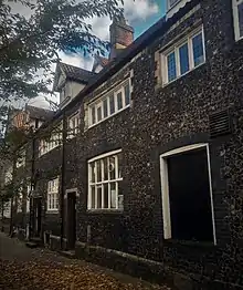 The Norwich Society of Artists was founded by Crome and Ladbrooke in 1803.[11] It arose from a sense of collective identity (but not a common style) that emerged among the many artists supported by Norwich patrons. They influenced each other by forming evening meetings, sketching together, and exhibiting their works; Crome and Ladbrooke took on apprentices, whilst others taught amateurs, all of whom tended to imitate the style of their teachers.[12] It was created "for the purpose of an Enquiry into the Rise, Progress and present state of Painting, Archaeology and Sculpture with a view to point out the Best Methods of Study to Attain to Greater Perfection in these Arts".[11] It held regular exhibitions and had an organised structure, showing works annually until 1825 and again from 1828 until it was dissolved in 1833.[13] Almost every professional artist in Norwich exhibited with the Society, but not all of the members of the Norwich School belonged to it.[8]