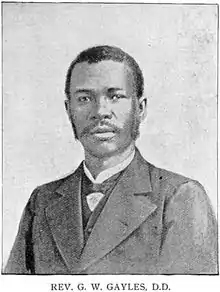 In 1902, Gayles was a delegate to the National Afro-American Press Association meeting in St. Paul, Minnesota, which was held in conjunction with the National Afro-American Council, the National Educational Association, and the Afro-American State Convention.[17] In 1904, Gayles was called the "Father of the Convention" of black Baptists of Mississippi.[18] He was also elected as a delegate from Mississippi to the international convention of Colored Baptists to be held in London, England.[19] Gayles was known as a firebrand and he was divisive in his preaching and his leadership.[5]