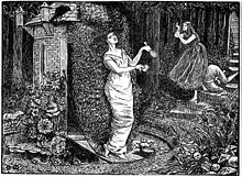 While producing black-and-white drawings for Punch, du Maurier created illustrations for several other popular periodicals: Harper's, The Graphic, The Illustrated Times, The Cornhill Magazine, and the religious periodical Good Words.[16] Furthermore, he did illustrations for the serialisation of Charles Warren Adams's The Notting Hill Mystery, which is often seen as the first detective story of novel length to have appeared in English.[17] Among several other novels he illustrated was Misunderstood by Florence Montgomery in 1873.[18]
