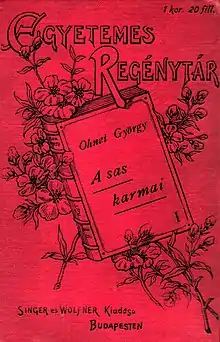 Ohnet was an admirer of Georges Sand and was opposed to realistic modern novels. He began a series of novels, Les Batailles de la vie, of a character simple and idealistic, which, although scorned by the critics as unreal and commonplace, were very popular. The series included the novels Serge Panine (1881) which was awarded by the academy; Le Maître de forges (1882), La Grande Marnière (1885), Volonté (1888), and Dernier Amour (1891). Many of his novels have been dramatized with great success, Le Maître de forges, produced at the Gymnase during 1883, being played for an entire year. His later publications include Le Crépuscule (1902), Le Marchand de Poison (1903), La Conquérante (1905), La dixième muse (1906),[2] La Route Rouge (1908), and La Serre de l'Aigle (1912). His last work was Journal d'un Bourgeois de Paris Pendant la Guerre de 1914 (1914).[3] In 1902 he was elected president of the Société des Auteurs et Compositeurs Dramatiques.[1]