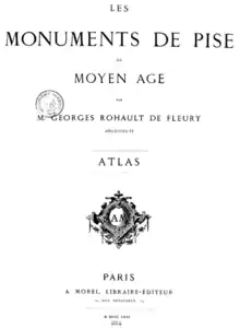 Rohault de Fleury visited Italy with his father in 1858-59, seeing Pisa, Pompeii and Naples. He published his first important monograph in 1866, Les Monuments de Pise au Moyen Age. In 1868, and again in 1869-70, he made trips to Italy. In 1874 he made his last visit to Italy with his father.[2] He exhibited in the Salons of 1863, 1864, 1867 (3rd class medal), 1870 (2nd class medal) and 1874 (1st class medal).[1]