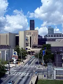 View of (from L-R) the Student Center, Urban Life Building, and University Center
