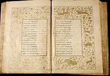 Collection of the Georgian manuscripts is divided into four sub-collections – A,[18] H,[19] Q[20] and S.[21] This collection contains both church and secular literary works. The preserved writings - "Martyrdom of Saint Shushanik", "Martyrdom of Evstati Mtskheteli", "Martyrdom of Abo Tbileli" form the cornerstone of the medieval Georgian church literature. Except of this collection comprises the notable works of Byzantine church literature translated into Georgian by Eqvtime Mtatsmindeli, Giorgi Mtatsmindeli, Eprem Mtsire, Arsen Ikaltoeli and other remarkable Georgian figures. From the secular literature are noteworthy handwritten copies of "Vepkhistkaosani" ("Man in the Panther Skin"), also other manuscripts containing astrological, geographic, medical, mathematic or military writings.[22]