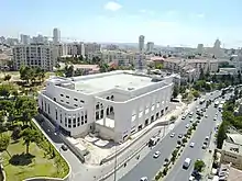 The group's headquarters is located in Jerusalem. During and after the British Mandate, the group's beth midrash was at the Sfas Emes Yeshiva, near Mahane Yehuda. Later on, the synagogue moved to Ralbach Street in the Geula neighborhood, and in the late 1990s, the Great Beth Midrash Gur was inaugurated on Yirmeyahu Street, near the Schneller Orphanage complex. In 2015, an extension to the building was begun, and on Rosh Hashanah 2018 (5779), the second wing of the Beth Medrash was inaugurated.[12] In 2022, the building was finished when the two wings were joined,[13] making it the largest synagogue in the world, with the main sanctuary seating up to 20,000, and having an area of approximately 35,000 m2 (380,000 sq ft).[14]