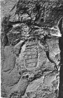 - ↑ Knecht, Richard J; Benner, Jacob S; Dunlop, Jason A; Renczkowski, Mark D (2023-08-11). "The largest Palaeozoic whip scorpion and the smallest (Arachnida: Uropygi: Thelyphonida); a new species and a new ichnospecies from the Carboniferous of New England, USA". Zoological Journal of the Linnean Society. doi:10.1093/zoolinnean/zlad088. ISSN 0024-4082.