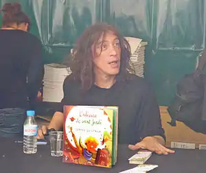 Gerard Quintana i Rodeja (Catalan pronunciation: [ʒəˈɾaɾt kinˈtanə]; born 27 November 1964) is a Catalan singer, songwriter, poet, novelist, actor, and radio and TV personality. He first came to prominence in 1986-2001 as the lead singer of the rock band Sopa de Cabra.[1] Sopa de Cabra was one of the leading bands of the rock català genre. Since the dissolution of the band in 2001, Quintana has pursued a successful solo career.[2] As a singer-songwriter, he completed five albums between 2003 and 2010, together with three in collaboration with Jordi Batiste, and a recent album (2014) with Xarim Aresté. He also writes and publishes poetry,[3] and has written regularly as a journalist for online Catalan newspapers and journals.[4] He appeared in the short film Diogenes, the dog.[5] Since the publication of his first novel in 2019[6] he is also establishing himself as a serious novelist.