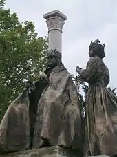 Arnulf I of Bavaria maintained an alliance with the Hungarians until his death in 899.[6] During their campaigns following their conquest of the Carpathian Basin the Hungarians stopped neither at the river Morava nor at the western border of Pannonia, but penetrated deeply into the territory of Bavaria as far as the river Enns.[7][8] During the battle of Pressburg[9] on 4 July 907, a Bavarian army was defeated by the Hungarians.[9] The Battle of Lechfeld (10 August 955) was a decisive victory by Otto I the Great, King of the Germans, over the Hungarian leaders. The defeat effectively ended Magyar raids on the West.[10]