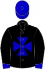 Black, yellow braids, yellow sleeves, black cap, yellow tassel Royal blue