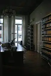 The Athens department was the second department founded by the institute (after Rome) in 1874 and it is the second foreign institute in Athens (after the École Française d’Athènes).[1] Part of the institute was established on May 17, 1872, and inaugurated on December 9, 1874. The construction of the building in which it is housed was funded by Heinrich Schliemann; the plans were made by Ernst Ziller and Wilhelm Dörpfeld.[2]