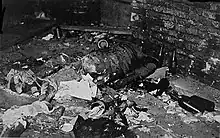 On 2 September 1944, following the capture of Warsaw's Old Town, German forces and their collaborators massacred at least 1,000 Polish POWs.[18] Among the victims were predominantly severely wounded soldiers who had been left behind after the evacuation of Home Army forces through the city's sewers to Śródmieście. The methods of execution included shooting and burning individuals alive. In some instances, Polish nurses who had stayed with the wounded soldiers were raped and subsequently executed.[19]