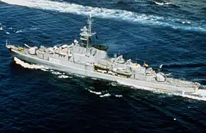 Augsburg was laid down on 29 October 1958 and launched on 15 August 1959 in Stülcken & Sohn, Germany. She was commissioned on 7 April 1962.[3]