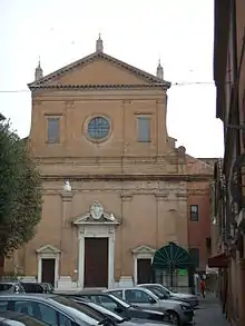 The architect Alberto Schiatti designed the church in 1570 for the Jesuits. The facade is sober. The interior decoration was mostly lost as a result of a fire and the suppression of the order in 1773. The church became property of the Somaschi Order priests until the return of the Jesuits in 1814. The adjacent convent is now a tribunal. Of the works now in the church is a 15th-century terracotta sculptural group: Mourning Over Christ by Guido Mazzoni; this was brought here from the razed church of Santa Maria della Rosa.[1] In the apse stands the Mausoleum of Barbara of Austria, Alfonso II d'Este's second wife, realised at the end of the 1500s by Francesco Casella.[2][3]