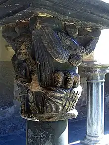 Shadrach, Meshach, and Abednego shielded by the angel (Aosta, cloister of the Collegiate church of Saint Ursus, 12th century)
