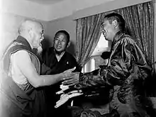 Geshe Sherab Gyatso (Tibetan: དགེ་བཤེས་ཤེས་རབ་རྒྱ་མཚོ།, ZYPY: Gêxê Xêrab Gyamco; simplified Chinese: 喜饶嘉措; traditional Chinese: 喜饒嘉措; pinyin: Xǐráo Jiācuò) (1884–1968), was a Tibetan religious teacher and a politician who served in the Chinese government in the 1950s.[1] After living in Lhasa for a period, he fell from favor with the establishment there in the 1930s and returned to his home in Amdo, an eastern Tibetan area. He associated himself first with the Nationalist Government of the Republic of China and then with the Communists of the People's Republic of China. He held a number of government posts in Tibetan areas under the People's Republic of China. He was also initially the vice-president and later the president of the Buddhist Association of China; the latter position he held until 1966. In 1968, during the Cultural Revolution, Sherab Gyatso's left leg was broken by a Red Guard. On November 1, 1968, he died. After the Gang of Four was arrested, on August 26, 1978, the Qinghai provincial government rehabilitated him.[2]