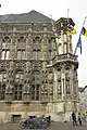 The City Hall (Dutch: Stadhuis) of Ghent, East Flanders, Belgium, is a four-sided complex surrounded by the Botermarkt, the Hoogpoort, the Stadhuissteeg and the Poeljemarkt. The main wings are the late-Gothic alderman's house of De Keure and the alderman's house of Gedele in the Renaissance style. The building has 51 halls.