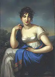 Beer, as he still named himself, studied with Antonio Salieri and the German master and friend of Goethe, Carl Friedrich Zelter. Louis Spohr organised a concert for Beer at Berlin in 1804 and continued his acquaintance with the lad later in Vienna and Rome.[12] A portrait of Jacob commissioned by the family at this time shows him 'confidently facing the viewer, his hair romantically dishevelled... his left hand rests on the keyboard, and his right hand grasps a musical manuscript... plac[ing] its subject in the tradition of the young Mozart'.[13] Beer's first stage work, the ballet Der Fischer und das Milchmädchen (The Fisherman and the Milkmaid) was produced in March 1810 at the Court Opera in Berlin.[14] His formal training with the Abbé Vogler at Darmstadt between 1810 and 1812 was, however, of crucial importance, and at around this time he begins to sign himself 'Meyer Beer'.[15] Here, with his fellow students (among whom was Carl Maria von Weber), he learned not only the craft of composition but also the business of music (organising concerts and dealing with publishers). Forming a close friendship with Weber and other pupils, Meyerbeer established the Harmonischer Verein (Musical Union), whose members undertook to support each other with favourable press criticism and networking.[16] On 12 February 1813 Beer received the first of the string of honours he was to accumulate throughout his life when he was appointed 'Court Composer' by Grand Duke Ludwig of Hesse-Darmstadt.[17] He was also in close contact with Ludwig van Beethoven as he played timpani at the premiere of his Seventh Symphony in December 1813. Beethoven complained that Meyerbeer was “always behind the beat”. But nonetheless, Beethoven saw musical potential on the young Beer.