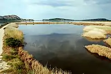 Gialova Lagoon (Greek: Γιάλοβα, pronounced [ˈʝalova]) – also known as Divari, from the Latin word vivarium, meaning "fishery" – is a brackish body of water in the municipality of Pylos-Nestor, Greece, about 8 kilometres (5.0 mi) north of Pylos. The lagoon, together with Voidokilia Bay, belongs to a unique ecosystem which constitutes a protected zone, in terms of both natural and cultural heritage. From the natural point of view, the entire area, together with Navarino Bay and the island of Sphacteria, forms part of the network Natura 2000 and has been named a Zone of Special Protection, with code GR2550008, and an Area of EU Importance, with code GR2550004.