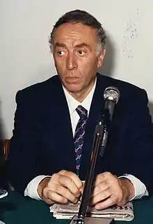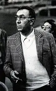 In 1968, the lawyer Gianluigi Porelli was appointed by the then president of the multi-sport club, Giovanni Elkan, at the head of the basketball section of SEF Virtus Bologna.[3] Alternately nicknamed "Torquemada" or "Robespierre" for his quick and often dictatorial methods, or, more frequently, L'Avvocato ("The Lawyer"), Porelli has been one of the most prominent figures in the history of Virtus which, through initiatives often unpopular but almost always winning, definitively carried towards professionalism.[4] As soon as he arrived, at only 38 years old, Porelli sacked coach Šíp and appointed Renzo Ranuzzi, a former player. However, Ranuzzi lasted one year only, due to the poor result of the team, which ended the season at the 10th place. After another poor result in the 1969–70 season under coach Nello Paratore, in 1970, Porelli hired Black V's legendary coach Vittorio Tracuzzi and sold the best player of the time, Gianfranco Lombardi, unleashing a popular uprising that even ended up in court. Despite Tracuzzi's comeback, the team placed 10th once again.[5] In 1970, thanks to Porelli, Virtus was also one of the main proponents and founders of the Lega Basket, the governing body of the top-tier level professional Italian basketball league.[6] In the same year, Virtus broke away from the multi sports club, becoming a joint-stock company. Thanks to this choice, which was highly criticised at the time, Porelli definitively healed the club's finances. In 1971, Porelli hired the American player John Fultz who, supported by important Italian players like Gianni Bertolotti and Luigi Serafini, succeeded in placing the team 5th in the national championship, the best result since 1967–68. In the following season, the team, composed by the same players and coached by Nico Messina, arrived 6th.[7]