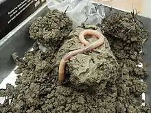 The giant Palouse earthworm or Washington giant earthworm (Driloleirus americanus, meaning lily-like worm[2]) is a species of earthworm belonging to the genus Driloleirus inhabiting the Palouse region of Eastern Washington and North Idaho, in the United States. The worm was discovered in 1897 by Frank Smith near Pullman, Washington. It can burrow to a depth of 15 feet (4.6 m).[3]