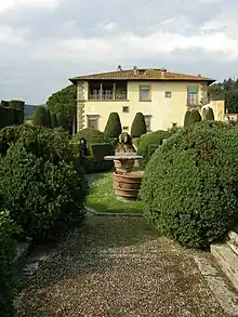 The villa is celebrated for the unique design of its gardens, originally laid out by Zanobi Lapi and his nephews in the first half of the seventeenth century and preserved until now with few major changes.[2] According to Edith Wharton, the Gamberaia was "probably the most perfect example of the art of producing a great effect on a small scale".[3] The design has inspired landscape and garden architects throughout the world, including Charles Platt, A. E. Hanson, and Ellen Shipman in the United States and Cecil Pinsent and Pietro Porcinai in Italy and the UK.[4] In 2010 the Gamberaia was chosen as the model for the "RCSF Tuscan garden", recreated at Snug Harbor, Staten Island, New York.[5]