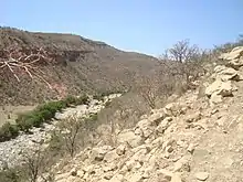 The valley bottoms in the gorge of this river, for instance at Inda Mihtsun, have been identified as a transhumance destination zone. Transhumance takes place in the summer rainy season, when the lands near the villages are occupied by crops. Young shepherds will take the village cattle down to the gorge and overnight in small caves. The gorges are particularly attractive as a transhumance destination zone, because there is water and good growth of semi-natural vegetation.[12]