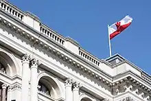 The official Gibraltar National Day events begin with a children’s fancy dress competition held at the lobby of the Parliament building in Main Street followed by a street party at John Mackintosh Square where food and drink stalls are set up providing Gibraltarian food such as calentita. Later a selected school choir sings songs with a Gibraltar theme, namely Llévame Donde Nací and Virgencita de Europa. This is followed by the main event, the Mayor's recitation of the names of the recipients of the Gibraltar Medallion of Honour and the reading of the Gibraltar National Day Declaration from atop the City Hall's balcony. This was previously followed by the traditional release from atop the Parliament building of 30,000 red and white balloons, representing Gibraltar's population, which had featured on this day since 1992.[1] The balloon release tradition has been ended in 2016 due to the threat that it poses to wildlife, marine wildlife in particular.[4] In the meantime, the school choir leads the general public in the singing of the Gibraltar Anthem.[5]