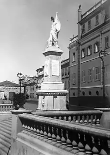 The Gibraltar War Memorial, also referred to as the British War Memorial, is located to the west of Line Wall Road in Gibraltar, the British Overseas Territory at the southern end of the Iberian Peninsula.[1][2][3] The monument, which commemorates the fallen of the First World War, was sculpted by Jose Piquet Catoli of Barcelona, Spain and was constructed of Carrara marble.[3][4] The memorial was unveiled by the Governor of Gibraltar, Sir Charles Monro, 1st Baronet (1860–1929), during a ceremony on 27 September 1923.[3][4][5] The inscription reads: "To the Memory of all Officers and Seamen of the Gibraltar Straits Patrol Who Gave Their Lives for Their King and Empire in the Great War."[6]