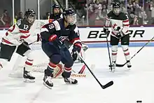 Gisele Marie "Gigi" Marvin (born March 7, 1987) is an American ice hockey player for Boston of the Professional Women's Hockey League. As a member of the United States national women's ice hockey team, Marvin won a silver medal at the 2010 Olympic Winter Games and the 2014 Winter Olympics, and a gold medal at the 2018 Winter Olympics. Her grandfather is Cal Marvin, the coach of the 1958 United States Men's National Ice Hockey Team and the manager of the 1965 United States Men's National Ice Hockey Team, is a member of the United States Hockey Hall of Fame.[1] She hails from Warroad, Minnesota.[2]