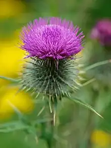As of 2013 over 200 species of flowering herbs, shrubs, trees (angiosperms), coniferous trees (gymnosperms); and rushes (Juncus) and sedges (Carex) have been inventoried on Gillies Hill.[7] The first flowers to appear on Gillies Hill after the cold of winter are the snowdrops which surround the ruined Fir Park Cottage. In May the forest floor along Old Drove Road is carpeted with English bluebells. These bluebells, Hyacinthoides non-scripta, are commonly confused with the Scottish bluebell or harebell, Campanula rotundifolia, which blooms throughout the summer, is lighter blue in color and is usually found in the higher reaches of Gillies Hill.