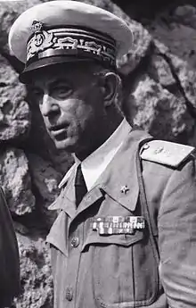 Pavesi was interned in a POW camp in the United Kingdom, and was repatriated in November 1944.[1] Meanwhile, in Italy, the admiral was the subject of harsh criticism - especially in the ranks of the fascist regime, and even more, later, in those of Republic of Salò - who accused him of not having opposed the necessary resistance to the Allies, "as the laws of duty and of honor compelled him", if not openly of treason.[1][2] In May 1944 he was tried and sentenced to death in absentia by a Fascist court in Parma.[1] Pavesi's decision was justified by many by the fact that a resistance to the bitter end would have only resulted in a massacre of the garrison and the civilian population of Pantelleria, without delaying the Allies' plans by more than a few days.[2] More criticism concerned the decision not to order, before the surrender, the destruction of depots, hangars and other military installations on the island, so that they fell intact into enemy hands.[3]