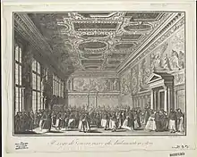 Giovanni Battista Brostoloni (born c. 1726) was an Italian engraver, born in Venice. He was a pupil of Joseph Wagner. He engraved two Portraits of Pope Benedict XIV and a St. Theresa in Adoration. He also produced twenty vedute of Venice (1763) and twelve large plates of Ceremonies of the Election of Doge and his Marriage with Adriatic –all after Canaletto.[1]