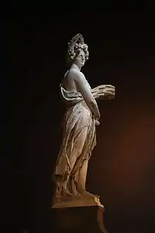 Fragmentary antiquities were not to the sixteenth-century collectors' taste. Caccini produced a head for an antique torso, and a further, crouching figure to produce the Bacchus and Ampelos in the Uffizi, which was once attributed to Michelangelo.[2] He restored a fragmentary Apollo Sauroctonos as an Apollo with the Lyre (Uffizi). He could also improvise on antique themes: the biographer of artists Rafaello Borghini reported in 1730 that "In truth he was highly skilled in diligently putting together pieces, and counterfeiting, the Antique."[3]