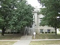 Girard was founded in the spring of 1868, in opposition to Crawfordsville, and named after the town of Girard, Pennsylvania, the former home of trustee Charles Strong.[4] It was based around the surveyed line of the Kansas City, Fort Scott and Gulf Railroad, in an attempt to gain an advantage over its rival.[5][6]