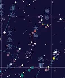 The Girl mansion (女宿, pinyin: Nǚ Xiù) is one of the Twenty-eight mansions of the Chinese constellations. It is one of the northern mansions of the Black Tortoise.