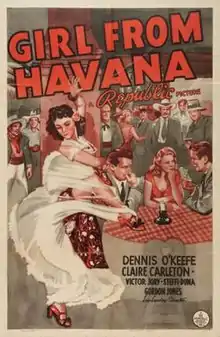Girl from Havana is a 1940 American drama film directed by Lew Landers and written by Malcolm Stuart Boylan and Karl Brown. The film stars Dennis O'Keefe, Claire Carleton, Victor Jory, Steffi Duna, Gordon Jones and Bradley Page. The film was released on September 11, 1940, by Republic Pictures.[1][2][3]